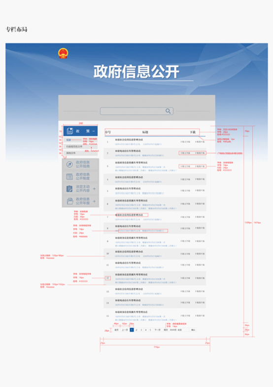 规章网页版式、下载版式及专栏页面设计方案