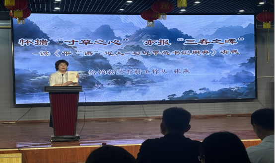驻恰帕勒兰干村工作队员张燕同志以“孝道”为题,分享了唐代诗人孟郊和母亲的感人故事以及习近平总书记为苍生谋福利的大孝大爱精神,讲到动情之处,不禁潸然泪下。驻色日克村工作队员刘心平同志紧扣“以人民为中心”思想,以工作队修渠修路架桥等解决群众急难愁盼为切入点,深刻阐述了习近平总书记人民至上的理论实践。