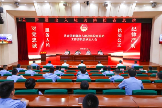 2025年8月6日,共青团新疆出入境边防检查总站工作委员会成立大会在乌鲁木齐召开。自治区团委书记艾山江·艾塔洪,新疆边检总站党委书记、政治委员熊志宇出席会议并讲话。