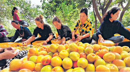 待杏子成熟时,买买提艾则孜每天雇人分5个点位采摘杏子。采摘、包装、装车,他每天要雇200人左右,有效促进了农民增收。