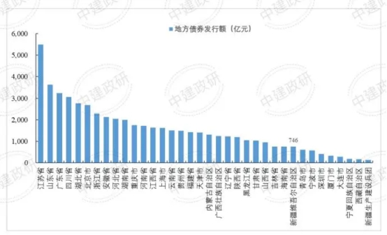 图22025年1-6月全国37个省(区、市)地方债券当年新增规模
