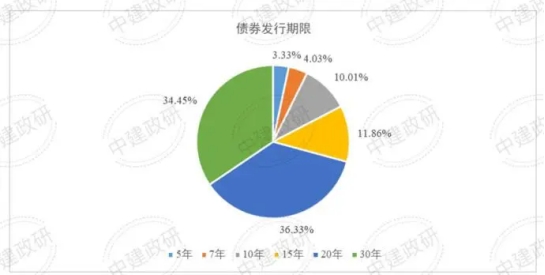 从期限结构看,2025年上半年发行债券以中长期为主,15年期、20年期、30年期占比分别为11.86%、36.33%、34.45%(见图3),合计占到发行债券规模的82.64%。