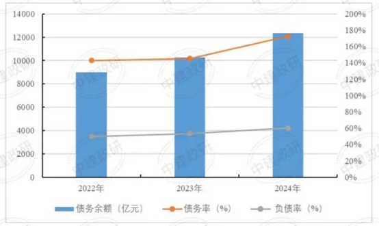 2024年末,新疆维吾尔自治区债务规模保持两位数增速,全区政府债务余额同比增长20.72%至12369亿元,综合财力为7171.45亿元,债务率为172.48%,同比增长18.83%,负债率为60.24%,同比增长12.45%(见图9),债务水平处于全国中下游水平,信用风险整体可控。