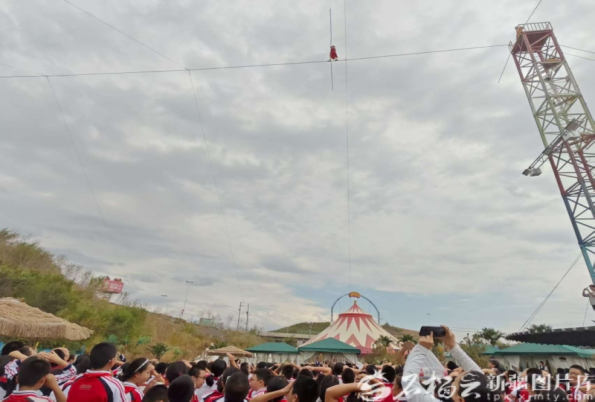 研学师生在乌鲁木齐市迪达马戏团观看达瓦孜表演。石榴云/新疆日报记者宋海波摄