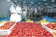 引领产业集群发展。聚焦九大特色林果产业链条,积极引进优质龙头企业和重大项目,现已创建以林果为主导的现代农业产业园8个,引进、扶持、培育林果加工企业139家、林果专业合作社895家,成立产业协会5个。目前,全地区年加工果品36.81万吨,初加工率88.3%,精深加工率提升至34.2%,加工产值达到37.64亿元。