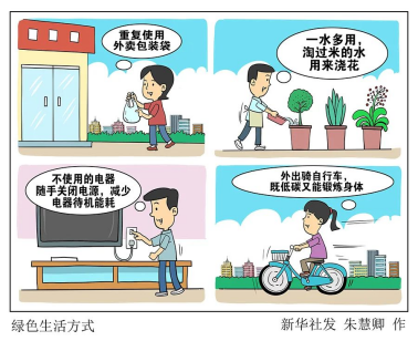 留意身边小事,行动起来:出门前,自备购物袋、保温杯,减少一次性塑料制品使用;上班路上,步行或乘坐公共交通工具,减少碳排放;日常使用节能电器,购买二手物品,践行“光盘行动”……让我们共同守护美丽家园。